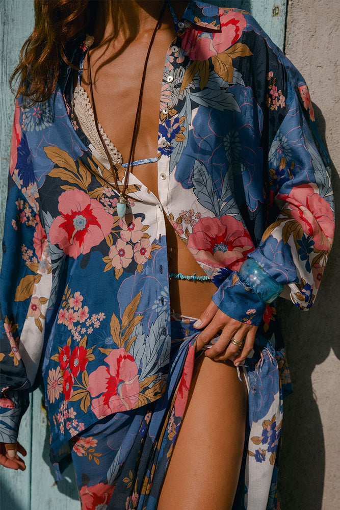 The shell button-down front, classic collar, and buttoned cuffs add a touch of refinement, while the drop shoulder and fluid silhouette make it versatile enough for both casual and elevated looks. Pair it with your favorite denim for laid-back elegance or layer over a slip dress for a chic evening ensemble.